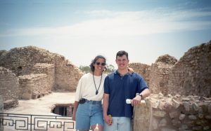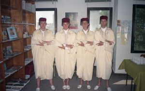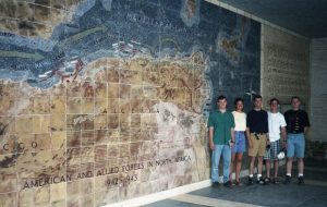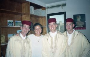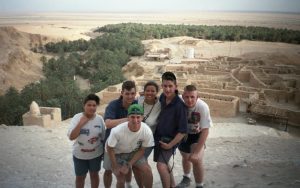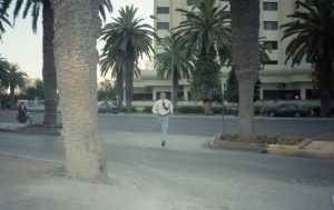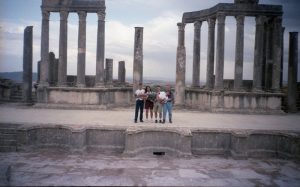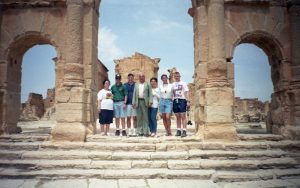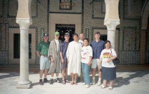 5 June 1995 (Day 1): We arrived in Tunisia finally! After all this time preparing to learn the language and packing my belongings, I was finally here. What a place. There were 5 of us on this adventure together. Me, Sean Kilcawley, Ryan Thomas, Padraic Lilly, and Ken Bolin…all of us majoring in Arabic. I was the only class of ’97 cadet; the guys were all class of ’96. We had a short delay with Sean and his ticket (he left it in the seatback pocket of the plane). But we were met at the airport and skipped the long lines and were escorted to the awaiting van. A guy started loading our bags and suckered Ken into giving him a $10 tip or so. We all laughed, and now joke about it. We went to the Embassy, met Sgt Becky something and the Colonel there. We also got Tunisian currency and drove around in the jeep. We saw a carnival or fair and have vowed to visit it. Eventually, we ended up at a local deli store for sandwiches. Everyone was extremely friendly, laughing at our feeble attempts to speak Arabic! One boy said he was half Japanese and half something else, but I think he was putting us on. We all drank coke, a popular soft drink in Tunisia. They even spell it in Arabic. We also stopped by a government regulated store to look at local Tunisian crafts. It was interesting – the outfits, the ceramics, and pottery. Very pretty stuff. Finally, we returned to the Embassy. We talked to the Colonel, who was friendly. He gave his insight to what to expect and we headed downstairs for another briefing by a guy who painted a bleak and morbid picture (Tunisia and how it combats terrorism). I did notice how many security guards are on every street corner practically! We were then driven to our respective host families. Sean and I in one house, Pad and Ryan in another, and Ken went solo. Sean and I saw smoke emanating from the jeep’s hood, and the radiator was apparently leaking. The driver of the car following us was extremely agitated and upset. He was not nice at all. Finally, we reached our host’s home. Sean and I were led to our rooms and had to fend for ourselves. I went downstairs and met Noora, who I thought was the professor’s wife. But she ended up being their ‘amah’ or housemaid. We met Anayah and Ameera (11 years old and 14 years old, respectively). Sean and I felt awkward trying to speak ANY Arabic with them. I told them my Arabic name was Zahra (flower), but they had no clue what we were saying. And Noora just sat and smiled at us. Eventually, 10-year-old Achmad showed up and his bright smile livened things up a lot! We started laughing and relaxing more. Then Dr Foouzia came home. She was the host’s wife. Very friendly! We then started nonstop conversation in Arabic. My brain was swarming with all the new words. Finally, at about 8:30 or so, we ate dinner. It was chillied pasta and spinach and an egg dish. It was good, but very spicy. Sean was dying!!! I laughed until it got to me too. Then I stopped laughing. It wasn’t so funny anymore. It was hot! We were then subjected to another grueling couple of hours trying to answer their questions. I thought I would never understand or get to sleep. Fortunately, all good things come to an end, and finally, at about 10:50 pm, we were allowed to rest and go to bed. We indicated we wanted to run, so they recommended waking up at 5:30 am to run. So I sat down, wrote a letter to Pat (actually a postcard from Frankfurt) and thought about him at Air Assault. Then I read a few chapters of Congo, written by Michael Crichton. Then I was off to sleep…at last.