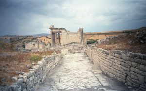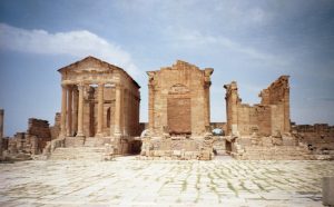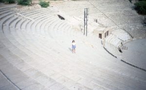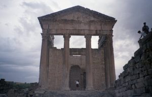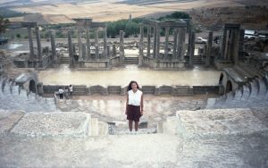 8 June: I awoke to my alarm ringing at 5:26 am, and dreaded running with Sean. But I dragged myself out of bed, and peed forever. When we were running, two very disconcerting things happened. I realized EVERYONE was staring at us as if we were crazy running in the rain, and I had to poop…badly. But I told Sean and we kept running until I knew I could either go in my shorts or hide in the bushes. I chose to hobble painfully home and relieved myself of yesterday’s disgusting yogurt meal. Class was long, but good. Foouzia is a teacher who is excited about teaching. We were then picked up by MAJ Keith and began our long trek to Dougga (ancient Roman ruins…absolutely amazing!) We drove forever. We ended up in some small town for lunch. We ate chicken and fries. As we sat in the café, a shelf containing all the spices crashed unceremoniously to the floor. We took it as an omen. The weather was about 104 degree and in the sweltering heat, I felt sick. But a rapidly moving rainstorm came in and brought a torrential downpour. We could see it approaching as we headed to Dougga. The change in temperature made everything a lot more comfortable. We each paid 3 Dinar to get in to see the ruins. However, as we were in the amphitheater, the guard asked us for 4 more Dinars. Essentially, he had given us 2 tickets extra, and because we didn’t notice this we lost out and had to pay for his mistake! Also, our car was sabotaged, and a flat tire awaited us. So we refused any of the locals help and fixed it ourselves, refusing to buy into their elaborate scam. We left there and began the trek home, which surprisingly was quick. We settled on dinner at a hotel. Although it was expensive, the food was absolutely TERRIBLE! I paid 70 Dinar for bread and water. Horrible place. We came back to our host’s house and now I am going to read the end of the Congo.