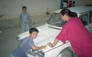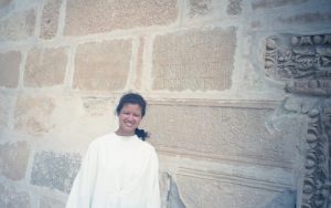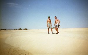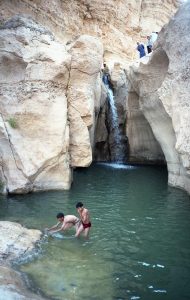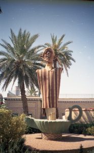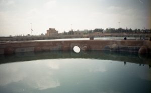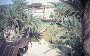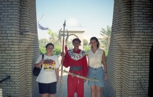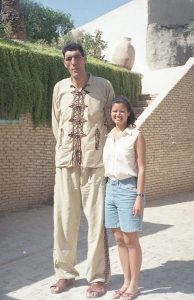 15 June: I awoke to Sean telling me to run at 5 am. I ran at 6 am on my own with my walkman and gym A uniform. What a weird feeling – to have everyone stare! But it did feel good when I greeted someone with “Sabah Alkhyr” and he responded in kind. After running, I hopped in for a quick shower and prepared for the day. We ate quickly and were 30 minutes early for class. Pad still wasn’t very happy with any of us. So we began class, which was another long one. Ryan needs to sleep more. He looked so miserable. Finally it was over. The guys and I split up…I went with Foouzia and they left for an afternoon at the beach. Foouzia and I ate a quick lunch at CITRAF where I was given a salami sandwich. And a glass of milk that tasted sour to me. It was terrible! But I gulped it down and shut up. Then I waited for Foouzia for about a half an hour until she fetched my photos. I ended up paying $125 for them, which is very, very expensive, but worth it too. After all, memories last a lifetime. So Foouzia and I went to a bank and I got $260 worth of Travelers Checks into Dinar (about 230), and I gave it all to Foouzia. Finally we went shopping. She knows what I want. And I felt happy with everything but the sword. Its absolutely insane shopping at the souq here! We shopped for what felt like forever, and then I ended up going to the public library with Foouzia. Boy she loves to talk to everyone! We left and I fell in love with a gorgeous sapphire and diamond ring $80. But it was a little big and Foouzia refused to pay anything more than $50 for it, so in the end I didn’t buy it. But we know what to look for. Then we went to a mosque. I pretended to be Muslim, just to experience what its all about. It was an interesting experience. Afterwards, we went to Foouzia’s other houses, where she told me Mohammed had grown up in. The family sure is rich! We caught a taxi home and had a quick dinner of sheep’s stomach and tomatoes. Then we stared at my pictures some more. Overall a good but exhausting day.