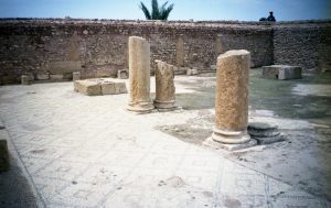 16 June: Well, another long day…finally over! What a day. The days are long but the weeks fly by. We started the day with me waking up late and rushing to get ready for class. After a quick breakfast, I hurried to the car and we arrived early. I told MAJ Keith all about my excursion with Foouzia. He wanted to know more about the mosque, so I promised to write it up in detail. Class wasn’t too bad today. We listened to the news and then had to tell Foouzia what we heard. After class, Foouzia told me she would shop a bit for me today. For lunch, we all went to a small restaurant where I ordered spaghetti (OK). I love the custard desserts here though. We then went on our afternoon trip to Northwestern Tunisia. I drove! Ha ha, what an experience! It was a long ride, but the scenery is really beautiful. I saw a lot – gorgeous picture postcard perfect scenes. We arrived at Bulla Regia, a former Roman city at about 4:30 pm or so. There was a bit of time for us to walk around, so we checked out the baths and the underground homes. The mosaics were absolutely incredible. It was a smaller Roman town, but very nice and worthwhile nevertheless. Afterwards, we stopped for ice cream and soda. Then Ken drove back. Like a maniac of course! I borrowed Ryan’s CD player and listened to the Cranberries and Journey. We arrived home at about 8:20 pm and beat Foouzia by a few minutes when she got home by taxi. She bought so much stuff; most of it was for me! We ate dinner and then Foouzia brought out Sean’s photos. I love my Tunisian birdcage. Its awesome. And the carpets, leather bag and pillow seats are great too. She really got good deals for me – I am sure happy. But, Sean isn’t! He didn’t like the fact that Foouzia took two of his photos (sneakily). She upset him a lot. Plus I think he’s ready to leave. I hope its not because of all the attention that I am getting from Foouzia. That would make me feel really bad. I don’t know why Ryan is calling me “Princess” now, but they kept saying I’m spoilt. Yeah right! Well, Buenos noches!