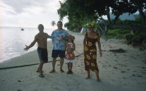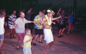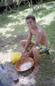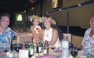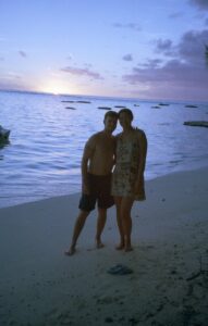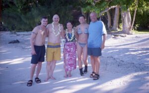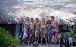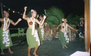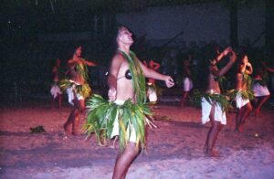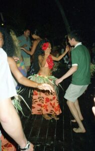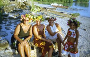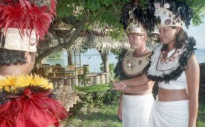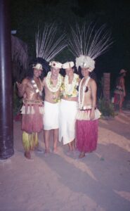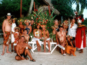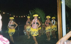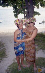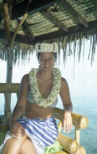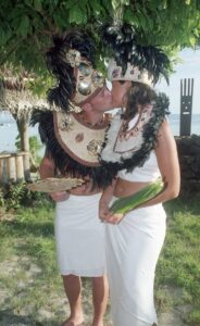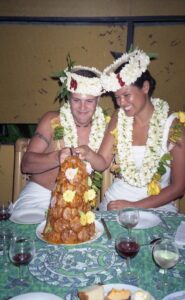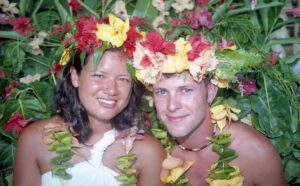 Robby’s experience couldn’t quite top Becky’s though! She was rushed off to the other side of the village and led into a grass hut filled with half a dozen Tahitian women. They immediately pulled off her bikini top and forced her to lie in the middle of the hut on top of a mattress. The women surrounded Becky in full circle and proceeded to slather oil all over her body. Can you even imagine receiving a massage from 6 pairs of hands synchronized in simultaneous motion? Becky thought the entire experience hysterical, and couldn’t keep a straight face when the women suddenly stopped, held hands, and began chanting a Tahitian prayer to bless the upcoming marriage.