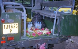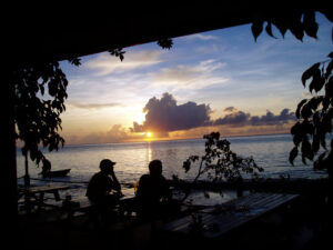 On the day of our traditional wedding ceremony, we were all relaxing on the patio getting pre-loaded with chilled Baileys. Attire for the women consisted of a swimsuit, complete with sarong. As for the men, swim trunks and a sarong plus some flip flops finished the low-key look. Becky showed up for her own wedding in a bikini with Robby following suit with just a pair of shorts. Talk about one of the least stressful weddings ever! We had no idea what was in store for us that night.