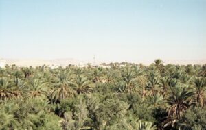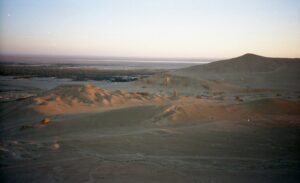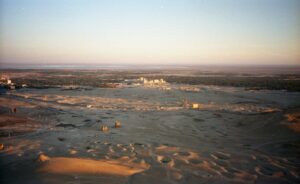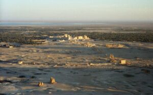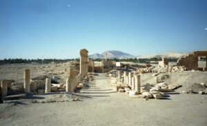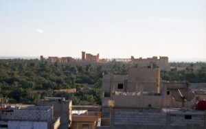 Palmyra is an ancient oasis city (as evidenced by the numerous palm trees). The modern city of Tadmur is off in the distance