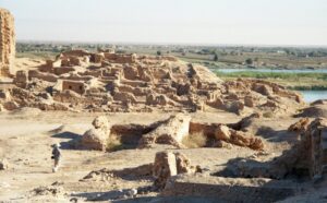 Dura Europos is a ruined walled city built on a cliff 90 meters above the Euphrates River