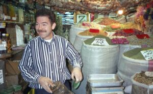 Friendly spice seller at the Hammadiyeh (Hamidiyah) Bazaar, Damascus