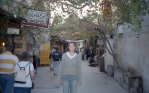 Becky stands inside the 18th century Al Azem Palace, Damascus