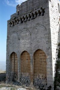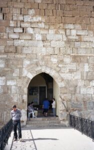 Entrance to Krak des Chevaliers. Notice the Arabic script etched into the bricks above the entrance
