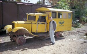 Robby next to a decommissioned train carriage at the Damascus Al Hejaz railway station