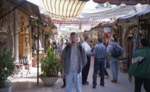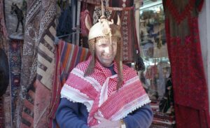 Robby at the entrance to the Hand Craft Market located in Tekieh Sulaimanieh, Damascus
