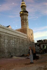 Robby standing in front of the Dome of the Clock, Umayyad Mosque (one of the oldest and largest mosques in the world)