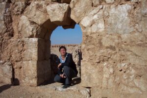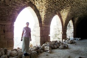 Becky standing in the archway of the Warehouse and Armory; Krak des Chevaliers