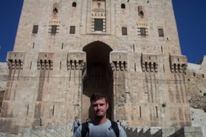 Robby at the 12th century fortified gate of Aleppo's citadel
