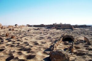 Resafa flourished despite being a desert outpost because it was on the caravan routes linking the cities of Aleppo, Dura Europos and Palmyra