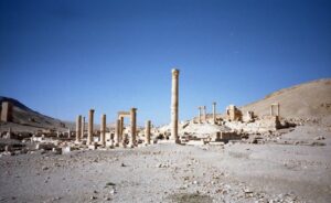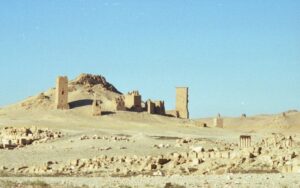 Sunset view over Palmyra, the once thriving city and vital caravan stop for travelers making their journey across the Syrian desert