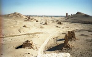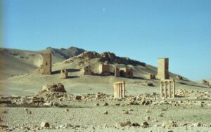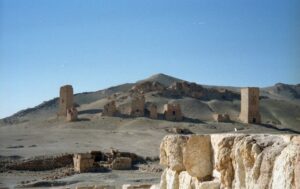 Roman era funerary towers located in the "Valley of the Tombs". They are multi-story sandstone monuments designed to accommodate hundreds of sarcophagi; Palmyra