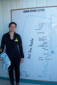 The next morning, we packed our gear, jumped into jeeps and were on our way to Aqaba, with warm climates and the red sea on our minds. We were given about an hour to freshen up and then taken to the Royal Diving Center for a chance to swim and snorkel in the Red Sea. Both of us are certified SCUBA divers but we had forgotten to bring our dive cards. Fortunately, the center had an online PADI certification system and they were able to verify our certifications in no time at all. So we happily put on our suits and geared up for a dive in the Red Sea. In comparison to Egypt’s red sea diving (off Hurghada), the diving in Aqaba is not bad at all. We even did a shore dive and within minutes, were surrounded by a surreal and colorful world.