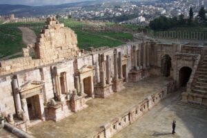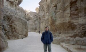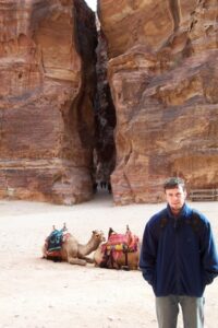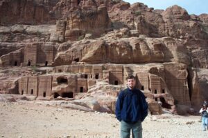 In February 2003, we had Jordan on our minds. However, travel to the Middle East was ill advised as a US-led war on Iraq looked inevitable. However, there were world protests begging for peaceful alternatives and we believed that our luck would hold out for a few weeks while we snuck a quick trip to Jordan, a beautiful country that both of us have wanted to visit ever since watching Indiana Jones’ Last Crusade. We were comfortable with the thought of traveling to Jordan independently and could find budget flights from Germany. However, our self-imposed itinerary was extreme and we did not think we could cover as much in a short period of time as a pre-organized tour group could. Therefore, we decided to use Explore Worldwide again (www.exploreworldwide.com) since our trip with them to Syria was so enjoyable. The main highlights we wanted to cover included Jerash, Umm Qais, Mount Nebo, Madaba, Kerak, Petra, Wadi Rum, Aqaba, and the Dead Sea.