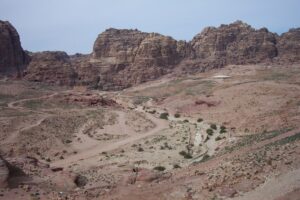 Today, the five of us rented a taxi to El Beidha. Mohannad graciously agreed to accompany us and we made the quick 8 km journey towards the ancient Neolithic village. Along the way, we were able to see the government provided lodgings for the Bedouins (who, centuries ago, had moved into Petra and remained in the ancient rock city until recent years when they were forcibly removed). It was a controversial conservation project…a compromise between the Jordanian government and the Bedouins was reached when the Bedouins were promised the sole right to sell trinkets and goods within Petra, as well as provided for with free lodging and education for their children.