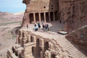 Mohannad offered to take us up to Ad-Deir (the Monastery), which was reached after a long, rock-cut staircase climb of about 30 minutes. It was absolutely incredible! While we were admiring the view, we saw daredevil climbers who were perched atop the Monastery and sitting around the top urn. They were miniscule in comparison and we barely noticed them except when one of them was trying to climb on top of the urn and we all thought he would fall and kill himself. Absolute madness!