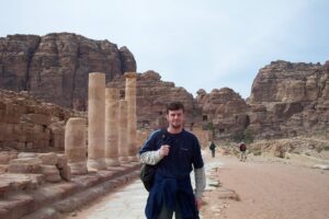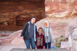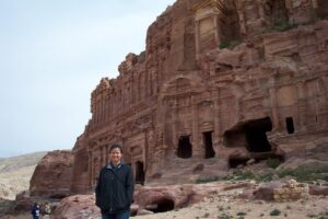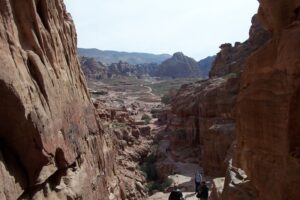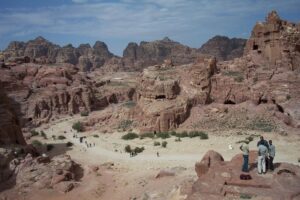 Once we were in sight of the treasury, that famous National Geographic photograph came to mind and all of us waited patiently for our chance to snap that beautiful shot. However, directly in front of us was a Japanese tourist who refused to get out of the way. He would take a picture, shuffle a few feet forward, recalibrate his camera, and start the whole process over again. It got so bad that some of our group members started to heckle him…but he didn’t move any faster. We finally breathed a sigh of relief when the coast was clear and the shot was ours for the taking….what a fabulous shot! The locals had even strategically placed a camel in front of the siq for that picture perfect postcard shot. Collectively as a group we saw the 8000-seat amphitheater, the Qasr al-Bint, colonnaded street, temple of winged lions, and the royal tombs. The views across Petra were breathtaking and we were anxious to break free to see this beautiful city on our own. Walking around in Petra is a unique and wonderful feeling. The rose-red city has many tones and shades throughout the day as light plays on it from different angles.