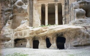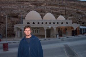 We had the rest of the day free to explore on our own so we happily split from the group and wandered around on our own. We had seen Ain Musa (Moses’ Spring) on the descent down into Wadi Musa, and figured that we had plenty of time to check it out. So we hiked out of Petra and up towards Wadi Musa. What seemed like a good idea hours ago suddenly seemed (and felt) foolhardy as we were rushing to beat the setting sun. We ended up sprinting the last mile uphill and found the small, three-domed building where Moses struck the rock with his staff (hence the ensuing gush of water). We wandered back down into town and caught dinner with the group at a nearby restaurant (Red Cave Restaurant). After dinner, a group of us went to the nearby Cave Bar (yes, built out of a real cave) for a couple of drinks. We also plotted our itinerary for the next day and agreed to join Anne, Judith and Jackie on a quick visit to El Beidha (“Little Petra”).