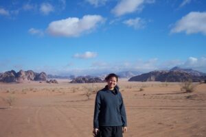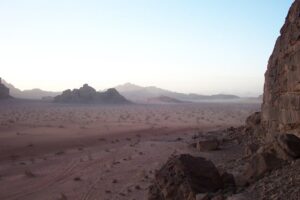 Mohannad managed to break us free from the endless Hokey Pokey cycle by asking if anyone wanted to hike up the side of a hill (in darkness) to admire the view beneath the stars. A bunch of us volunteered and we ran up the hill in a joyful attempt at escaping the madness. However, it seemed that for every step forward, we would slide two steps back. Getting to the top of the hill seemed to take forever and we were all out of breath once we struggled to the top. We all huddled underneath our blankets as Mohannad started a makeshift fire that we all found ourselves gravitating towards. However, night life in the desert is cold and the fire was a futile attempt at trying to staying warm. After about an hour or so of telling stories beneath the stars, we ended up crashing for the evening within our sleep sacks. Becky had planned ahead for this mass-sleeping experience….she brought along some earplugs since she knew there would be a couple of loud snorers within the group and we slept well throughout the night.