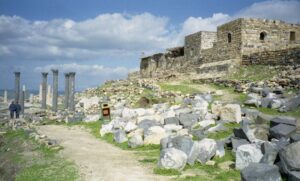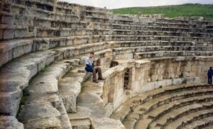 After wandering through Jerash, we were off to explore Umm Qais, whose ancient Gadara ruins command impressive views over the Sea of Galilee (Lake Tiberias) and the Golan Heights. According to the Bible, this city was the site where Jesus cast the Devil out of two men into a herd of pigs (Matthew 8:28-34). Umm Qais’s theatre was most impressive and all of us soaked in the wonderful heat upon the basalt rocks that made up the theater.