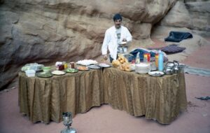 That night after dinner, our Bedouin hosts sang some local songs and danced around the campfire for us. And then we were asked to reciprocate. Our group suddenly turned bashful until Sarah, our fearless leader, led us into a “Hokey Pokey” song and dance routine. Little did we know but we had unleashed Pandora’s box. The locals LOVED it and everyone was forced to stand up and dance around the campfire. After we would sing and dance one complete rendition of the song, the laugher would die down and we would stand around in silence (still holding hands) until one of the Bedouins would bellow “Hokey Pokey” and we would do it all over again. We don’t know how many times we sang that song but we are sure it is a local favorite to this day.