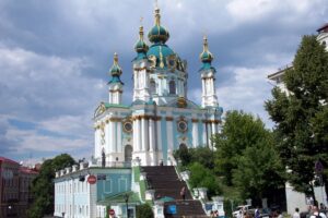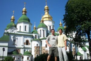 Kiev is a beautiful city with marvelous hills and unique sightseeing. Its architectural landscape is unique and because of the large number of orthodox churches strewn across its skyline, it is sometimes called the gold-domed city. Our guidebook provided us with a brief synopsis on the history of Kiev which is recounted here. First settled in prehistoric times, Kiev became an East Slavic settlement during the 6th and 7th centuries. It soon developed into an important commercial center located on a major trade route. In 860 the city was taken over by Varangians (Vikings), who made it the center of the first significant East Slavic state, called Kievan Rus. In 988, during the reign of Volodymyr I (Vladimir I; also known as Saint Vladimir), the inhabitants of Kiev adopted the Greek Orthodox faith, and the city became the leading religious center in Kievan Rus. Unfortunately, Kiev’s exposed position made it especially vulnerable to attack and the Mongol armies, led by Batu Khan, sacked and destroyed the city in 1240. (See National Geographic’s February 1997 article detailing the Mongol Horde for more detail). Kiev remained under Mongol domination until the 1360s when it came under Lithuanian rule, followed by the Crimean Tatars, Poland and Russia. In the 18th century Kiev was heavily fortified, and in the 19th century it grew as a trade and industrial center. Kiev was under control of German troops during World War I and served as the scene for much of the fighting that occurred after the 1917 Russian Revolution. In 1934, Kiev replaced Kharkiv as the capital of Ukraine (which was then part of the Union of Soviet Socialist Republics). During World War II, Kiev was occupied by German Nazi forces and suffered great damage, losing as many as 200,000 of its inhabitants as well as many irreplaceable architectural and art treasures. After the war the city was reconstructed and resumed its place as one of the chief Soviet economic and cultural centers. Kiev hit headlines in April 1986, when the nuclear reactor at nearby Chernobyl exploded, but scientists generally agree that the city is now safe from radiation effects. Following the dissolution of the USSR in 1991, Kiev became the capital of independent Ukraine. The city is located on the Dnieper River (the third largest river in Europe) and offers some amazing views. The river is the dividing line in the city, with the old section’s ruins, ancient castles and fortifications lying on the right bank and the new quarters (post WW II) on the left bank. Kiev was an important medieval European religious center and is the home to several important religious buildings that survived intact throughout the centuries. Some of these famous buildings include the Cathedral of Saint Sophia (also known as the Hagia Sophia of Kiev; founded in the early 11th century but largely rebuilt in the 17th-18th century). Saint Sophia is the oldest cathedral in Ukraine and is famous for its amazing frescoes and mosaics. The large Perchersky, or Cave, Monastery (founded in the early 11th century) is world renowned for its ancient catacombs and is considered one of the most sacred edifices of the Ukrainian Orthodox Church. Other striking religious structures in Kiev include the baroque-style 18th-century Church of Saint Andrew and the late 19th-century Cathedral of Saint Vladimir. We planned on visiting all of these highlights as well as squeeze in a visit outside of Kiev to Pirogovo, the picturesque home to the outdoor museum of folk architecture and rural life. We considered hiring a local guide to give us a tour around Kiev since our time was so limited but after seeing how compact the city is (Kiev is definitely a walker’s paradise and should be explored on foot!), we decided against it.