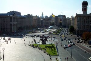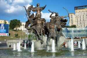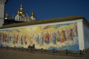 Armed with our Ukraine guidebooks, we spent our first day touring the city’s main highlights. Our apartment was a five minute stroll to St. Sophia, which we made our first stop. Since it was late in the afternoon and we didn’t want to feel rushed, we decided to save our visit for another day and instead admired the baroque tower from Sophievskaya square. Next stop was a stroll across to St. Michael’s cathedral to admire the frescoes on the outside wall. After that, it was a leisurely walk on Andriyivsky Uzviz, a cobble-stoned street that connects Podil (in the upper town) and Kontraktova Plosha (Square). This was a really colorful street since it was packed full of numerous handicrafts stalls and artists selling wares such as embroidery, pottery or Russian Matryoshka dolls. St. Andrew’s church is a gorgeous green/gold orthodox church that is situated at the top of the hill and we stopped to admire its beauty. Nearby the church, a crowd was gathering around a statue of a man proposing to a woman. Everyone was fighting to take their picture next to this popular statue and we could only guess why since it wasn’t noted in our guidebooks. St. Andrew’s is an exquisitely beautiful 18th century Ukrainian baroque church and we eagerly snapped several photos of it from various angles. We continued down Andriyivsky Uzviz, which was really crowded with people buying/selling souvenirs or watching impromptu performances given by street side actors. Finally, we made our way down to Kontraktova Square (which is the oldest square in Kiev, dating back to the Kievan Rus period). Afterwards, we strolled back towards the Kiev Funicular for a ride back towards St. Michael’s. From there, we wandered down to Independence square and found hundreds of like-minded locals filling up the square. Most people clutched a bottle of brew and were downing significant quantities so we decided to join them. Beer from the nearby kiosks was not expensive and we proceeded to join in the fun for just a few dollars.