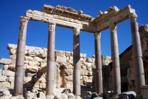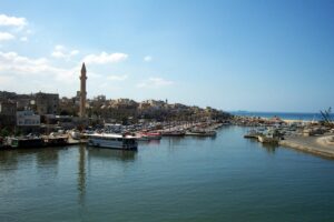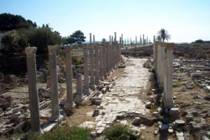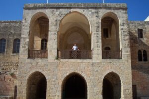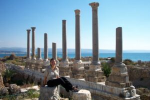 We started off catching a taxi towards the “cola” stand where we were told we could catch a local bus to the south of Lebanon. Note of caution that our fellow hostellers told us was to make sure we asked for SER-VEES taxis or else we’d get stuck paying full fare. As it was, the ‘service’ taxis were a great bargain, driving us at breakneck speed throughout Beirut for about $1. At the Cola stand, everyone was super helpful finding us a local bus/van that was heading towards Sidon, our first destination. Local buses were definitely the way to go! Everyone we met was really friendly and helpful and it is a practical way of getting around the country. Our combined fare to Sidon was approximately 50 cents! Sidon (also known as Saida) is a small port city. We hopped off the bus and wandered around the city, getting lost in the souqs and enjoying the mouth-watering smells drifting throughout the old city. First stop was the sea castle, Qasr al-Bahr, which is connected to the mainland by an Arab fortified stone bridge. From the roof of one of the towers, we had a great view of Sidon. Afterwards, we head towards the old city and stumbled upon the Khan al-Franj (inn of the foreigners) which was immaculately clean. After exploring Sidon to our heart’s content, we headed towards Tyre, a city just north of the UN security zone boundary. In Tyre, we had lunch at a small restaurant in the harbor (AMAZING…we both agreed we would fly back to Lebanon in a heartbeat just for the food alone…every meal we ate there was absolutely top-notch and a joy to the taste-buds). What amazed us was the fact that we were the only diners at the restaurant! Food of this caliber would have diners waiting in line back in Germany! After lunch, we walked over to Al-Mina excavations which is a beautiful site of columns, mosaics and baths overlooking the sea. The security guards enjoyed Becky gabbing away in her pidgin-Arabic and were really helpful in getting us a free ride over to Al-Bass (another archaeological area in Tyre displaying marble columns, sarcophagi and the remains of a Roman Hippodrome).