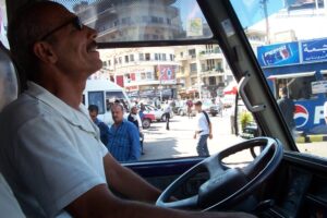 The next morning was an early rise to visit Baalbek, Lebanon’s premier archaeological attraction. We were both local bus converts and found it easy to hop on a bus going towards Baalbek from the Cola stand. Approximately 2 ½ hours later, we were in Baalbek, marveling at the beautiful acropolis’s sheer magnitude. Even more shocking was the fact that Robby and I had the site to ourselves…we split up and began posing next to massive columns, looking miniscule in comparison. Robby’s six-foot frame was the diameter of one of the columns! We happily crawled around the hexagonal court, great court, temple of Jupiter, Arab Fortification and Mosque, Temple of Bacchus (amazing ceiling slabs), and Arab Tower and Museum. The security guards eyeballed us suspiciously until Becky broke out in a super huge grin and asked them to pose for a picture with Robby. Then they happily acquiesced and demanded Becky pose for photos with them, hugging her tightly like she was a long lost relative! We left Baalbek and grabbed street fare at a small shawarma stand. One bite of the succulent shawarma and we were talking nonsense about flying the shawarma stand and owner to Germany so he could become our personal chef. The food was absolutely amazing and despite stuffing ourselves, we were still craving for more!!! After Baalbek, we flagged down a mini-van heading towards Beirut and took a quick snooze on the ride back. One of our fellow passengers was eager to practice his English and woke us up to talk. We found out that he was extremely educated (earned a computer science degree) yet he was unable to find a decent paying job. He was a true pleasure to talk to and give us tons of advice on what to do and see in his country (Jeitta Grotto, Kadisha Valley and the famous Cedars). We left him at the Cola stand and negotiated with a taxi to take us directly to Beiteddine (an Ottoman style palace). Beiteddine is situated in a nice location: surrounded by lush gardens and atop a terraced hill. The mosaics were incredible as well as the intricate architecture. We marveled at the beautiful hammams and relaxed in the gardens before making the journey back to Beirut. That evening we wandered back down to the Corniche (when in Rome…) and grabbed a few hours of sleep before our early morning bus ride to Tripoli.