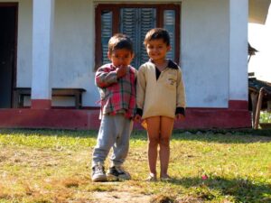 Cute Tharu boys posing for a photo (one with pants and the other opted to pose without)