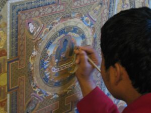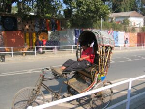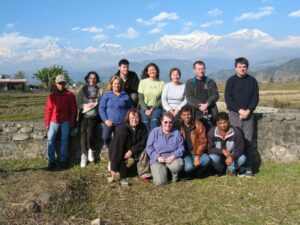 Day 10: We started our journey to Pokhara along the deep gorge of the Narayani River and in the foothills of the Himalayas. The scenery changed dramatically from the forests and farmlands of the Terai to steep terraced hills, and as we got closer to Pokhara we begin to see the formidable Annapurna Range. Machhapuchhare, the ‘Fishtail Peak’, dominated the skyline. Pokhara greeted us with a street fest in progress to bring in the new year. Unfortunately we were notified that we would have to depart a day earlier than planned to avoid getting stranded for several days due to roadblocks by the Maoist and student demonstration activities. We were deeply disappointed of the news of having to leave before we had a chance to do some in-depth exploration, but we still found time to muse over Pokhara’s great bargains on North Face fleece, loads of trekking gear, thankas (traditional paintings), and various other touristy items.