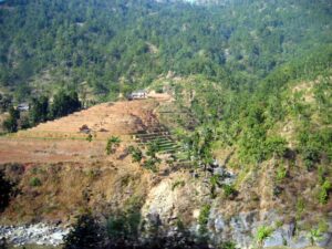 Scenic steep terraced hills on the drive from Chitwan National Park to Pokhara