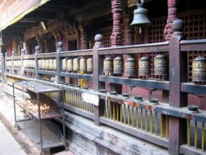 Prayer wheels at the base of Boudha Nath Stupa, one of the oldest and the biggest Buddhist monuments ever built in Nepal