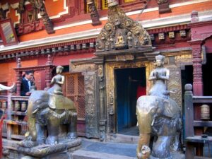 The Golden Temple (Hiranya Varna Mahavihar), built in the 12th Century by King Bhaskar Verma, is located just north of Patan Durbar Square
