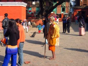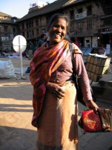 A friendly Nepalese man grins at us; Nyatapola Temple in Bhaktapur