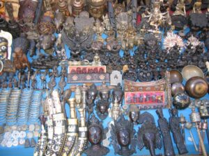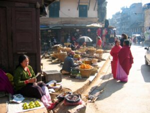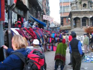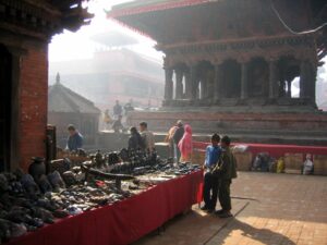 An early morning mist over this souvenir stand; Patan Durbar Square