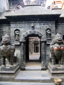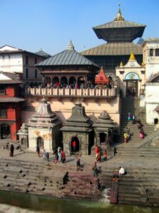 The Pashupatinath Temple is the oldest Hindu temple in Kathmandu. The nearby Bagmati River is also considered sacred and is used by pilgrims as a ghat (bathing spot)