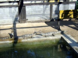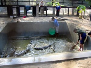 It’s cleaning time at the gharial crocodile conservation park; Chitwan