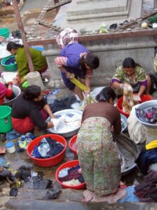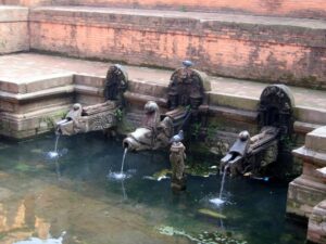A pool of water (which locals use for drinking, cooking or laundry); Patan Durbar Square