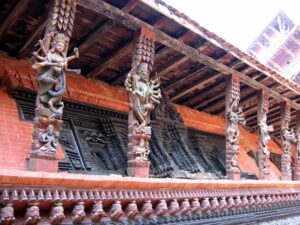 Detail of a unique masterpiece of wood carving, the Palace of 55 Windows in Bhaktapur Durbar Square