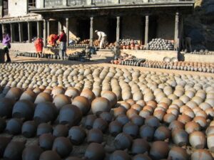 Hundreds of clay pots laying out to dry at Potters Square; Bhaktapur