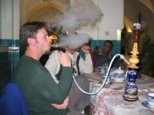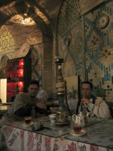 We ended our Isfahan tour in a local teahouse where we sipped on hot tea and smoked banana tobacco. Unfortunately, we witnessed a scene that caused us bewilderment until Amin explained what had happened. At the teahouse, there were three Japanese tourists who were chit chatting with a young teenaged group of boys and girls (mingled together at the same table and sitting on the same benches) One of the Japanese tourists asked his tour leader to take his snapshot with the group and the teahouse owner came rushing out enraged and telling off the Japanese tour leader. An ugly scene ensued and the Japanese tourists were kicked out of the teahouse and the Iranian teenagers given a verbal lashing. What we failed to realize was it was illegal for the teenaged group to be co-mingling like that in public. In fact, it was only permissible for the girls to hang out together separate from the boys. Because the Japanese tourists had captured the image of the mixed group together on his camera, the owner feared that the religious police would shut down his teahouse again (apparently this was THE popular teenager hangout and the teahouse had been repeatedly shut down due to similar violations).