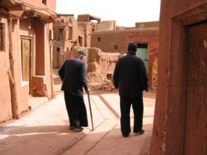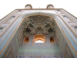 After Mahan, we were on our way to Yazd where we visited the silence tower, fire temples and Friday Mosque. The Friday (Jameh) mosque dominated the old city. It has an amazingly high portal, flanked on either side by two enormous minarets and adorned with a 15th century inscription. The towers of silence and fire temple are Zoroastrian sites and we learned a lot about Zoroastrian beliefs (purity of the earth, therefore dead bodies cannot be buried but must be left uncovered so that vultures can pick the bones clean) Amazingly, this was widely practiced up until only 40 years ago!
