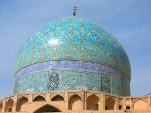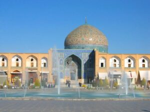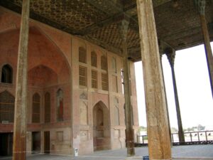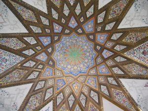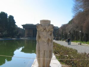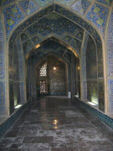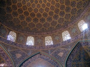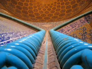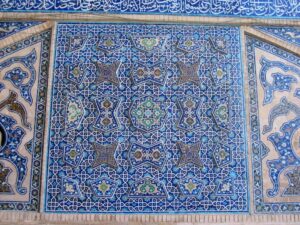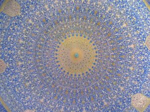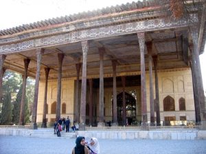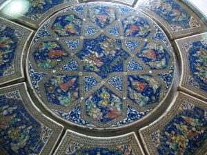 Today we explored Imam Square to our heart’s content, visiting Imam and Sheikh Lotfollah Mosques and Aliqapu Palace. The Emam Mosque was undergoing construction but was still incredible. It has the reputation of being the most beautiful mosque in the world and the reputation is well deserved. The blue tiled mosaic designs strewn throughout the complex were breathtakingly beautiful and we could have spent hours here admiring the amazing architecture. However, we were off to visit Sheikh Lotfollah Mosque where we met a super friendly American-Iranian lady who was an artist living in Tehran. She was thrilled to meet “intrepid” Americans willing to overcome the stereotype of Iran and urged us to visit her in Tehran. We wished we had more time as we would have loved to meet her family and spend a bit more time with her. However, Amin was anxious for us to see all the major highlights of Isfahan so after talking to her for a while, he ushered us over to the Ali Qapu Palace, which is an unusual six-storied palace.