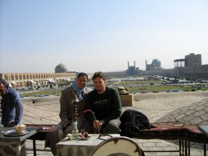 We spent hours marveling the ruined city before having lunch at the nearby Takhte Tawood Restaurant. After lunch, we stopped at Naqsh-e Rostam and Naqsh-e Rajab, two rock tomb complexes that are marvelous. Stone reliefs have been carved into cliff faces and the amount of detail on them is amazing. The reliefs depict scenes from imperial conquests and royal ceremonies. After baking in the sun all day, we headed back to our home base of Shiraz to visit the Garden of Eram and Hafez Tomb. Hafez is a celebrated poet and we found dozens of school children here embracing their books of poems and reading them aloud while touching Hafez’s tomb. It was a really neat experience to relax in the peaceful surroundings and observe this ritual unnoticed. However, once the school children were aware of our presence, we were mobbed by hundreds of girls who wanted to take pictures with us and were force-feeding us potato chips. We happily obliged them all before retreating to the teahouse for a puff on the water pipes.