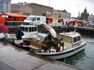 Helsinki harbor is transformed into a colorful market during the day when vendors tout their wares to locals and tourists alike. From fresh seafood to fruit to funky hats and touristy paraphernalia, the whole gambit of choices was available. We decided the most prudent starting point was the nearby tourist information office, which provided excellent free maps and advice and was invaluable in helping us plan our day.