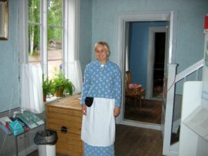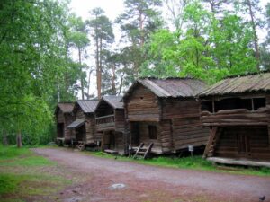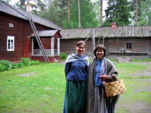 We found out that tomorrow, 12 June, was a huge Helsinki city celebration, full of parades, free concerts, dances and hoopla. However, today there were a few events preceding the big events tomorrow so we noted the times and places and decided to knock out the major sightseeing early on in the day and possibly catch a street celebration later during the day before our return trip to Tallinn. First stop was Senate square which is dominated by an imposing Cathedral at the top of a steep, wide staircase. Services were ongoing but we ducked in briefly to check out the cathedral’s rather plain interior. There were numerous tour groups that were seeking refuge from the rain inside the cathedral so we decided to make a break from the crowds and head over towards the old Russian orthodox Uspenski Cathedral. Lilacs were out in full bloom and old regatta vessels filled the harbor in anticipation of tomorrow’s festivities. We spent some time admiring the frescoes and icons in the interior of the church before opting to leave the city for its outskirts where the Finnish Seurasaari open air museum is located. Public transportation in Helsinki is excellent and numerous residents came up to offer assist once they saw us whip out a map to orient ourselves around the city. We really love the Finns…they are such friendly people! Plus the fact they are super good looking and speak impeccable English definitely makes a good first impression.